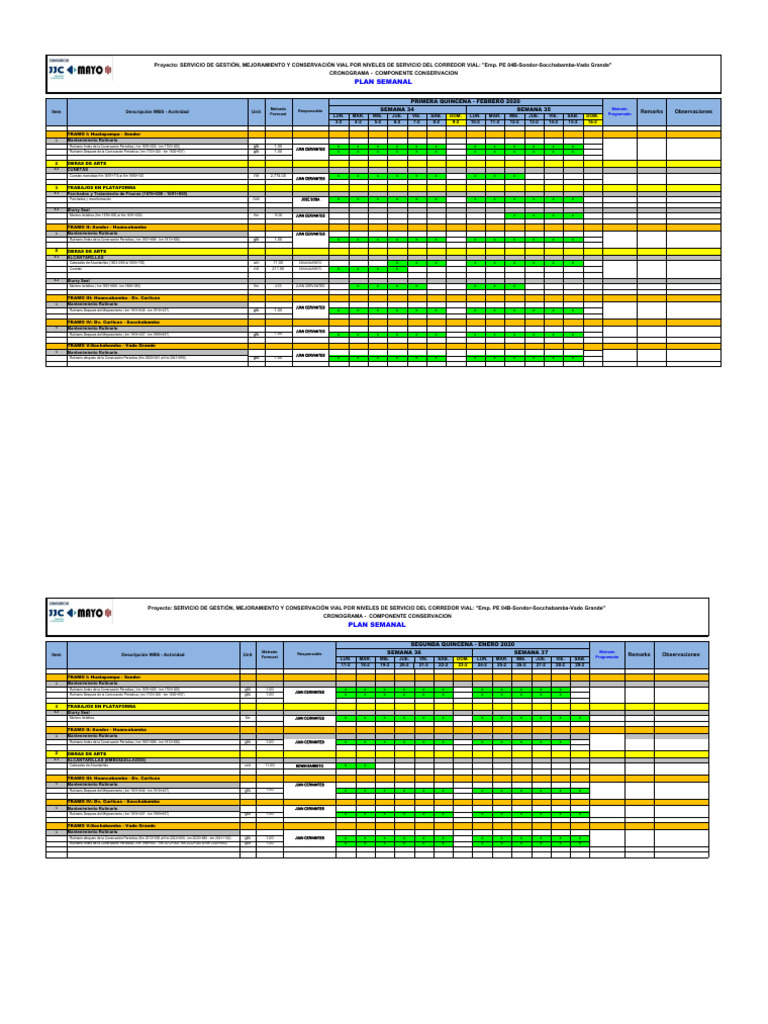 Rutinario despues de la Consrvación Periodica (Km 2012+000 al Km 2022+000; km 2025+880 - km 2041+142) glb 1.00 JUAN CERVANTES x x x x x x x x x x x x