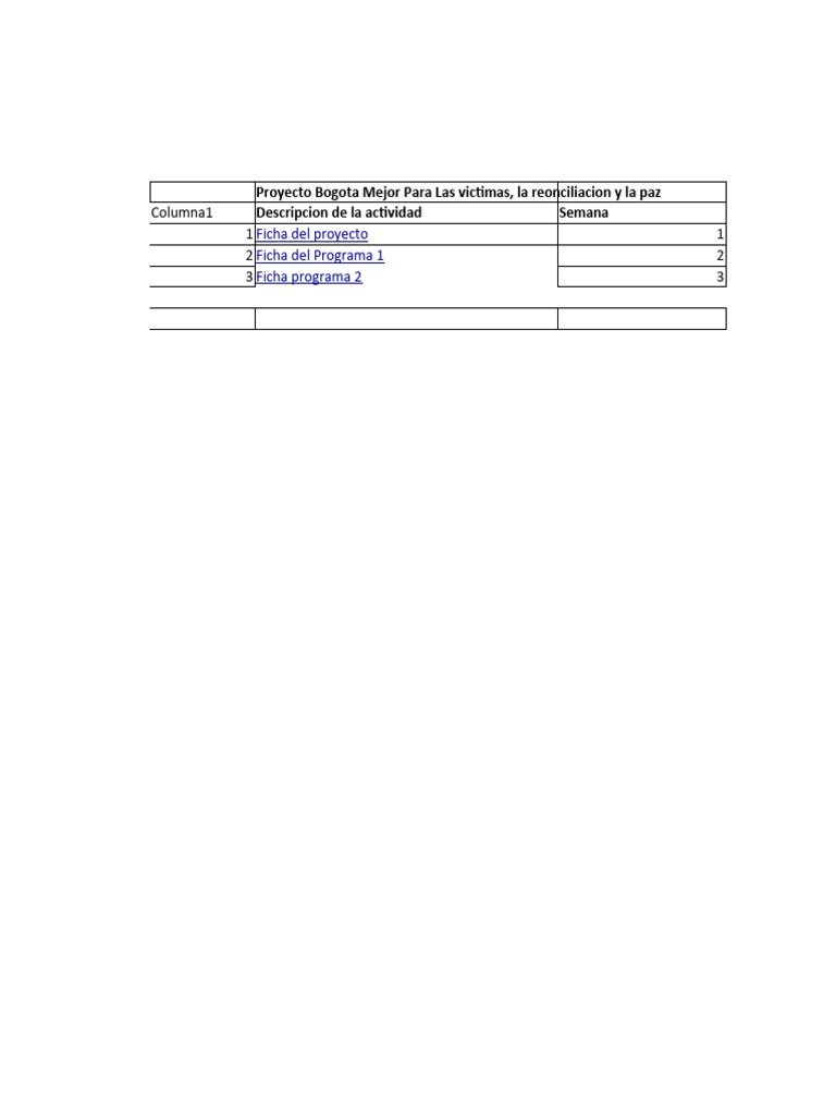 Columna1 Descripcion de la actividad Semana