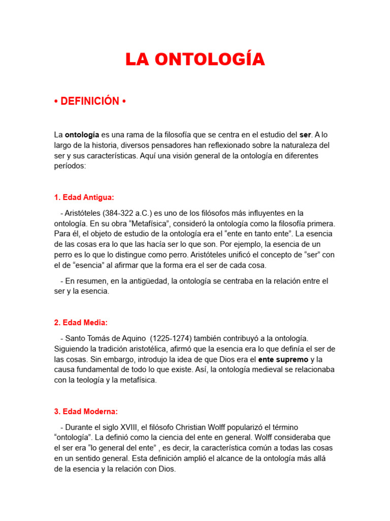 ser y sus características. Aquí una visión general de la ontología en diferentes