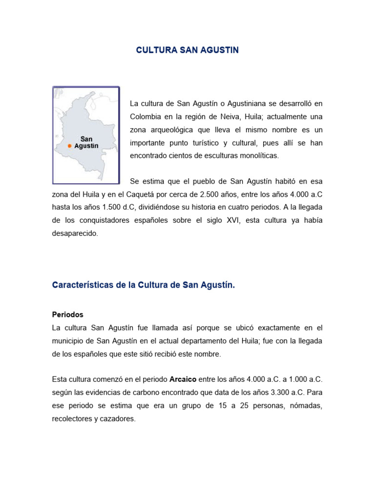 La cultura de San Agustín o Agustiniana se desarrolló en