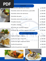 Menú de Cebiches y Platos Marinos