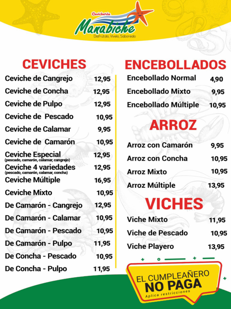 Menú de Cevichería Cedeños