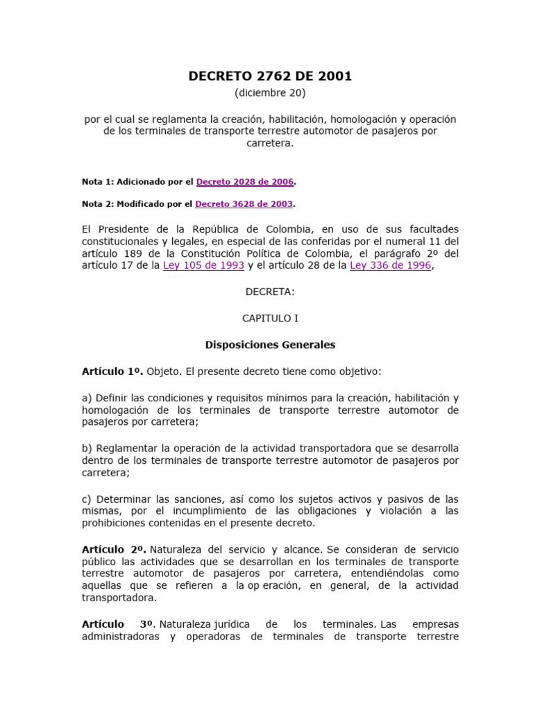 DECRETO 2762 DE 2001