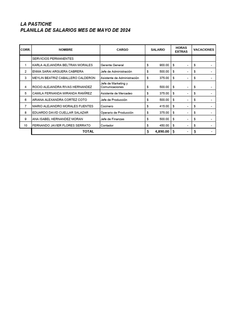 PLANILLA DE SALARIOS MES DE MAYO DE 2024