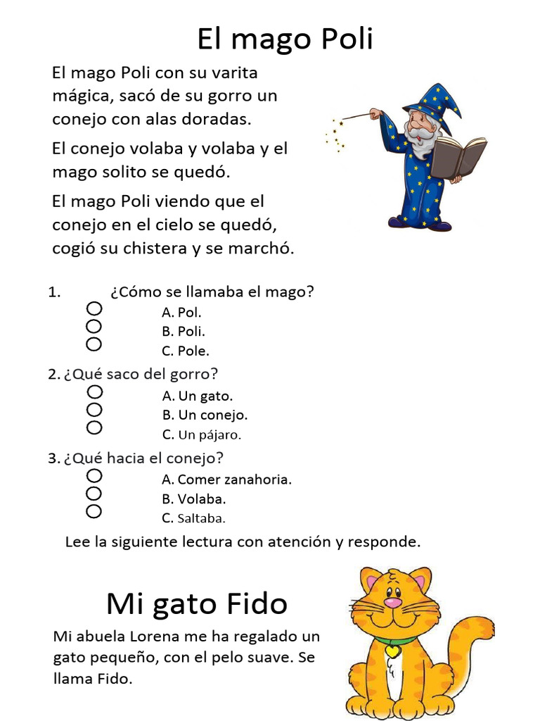 Fido corre a la cocina de la abuela, se sube a la silla y dice: