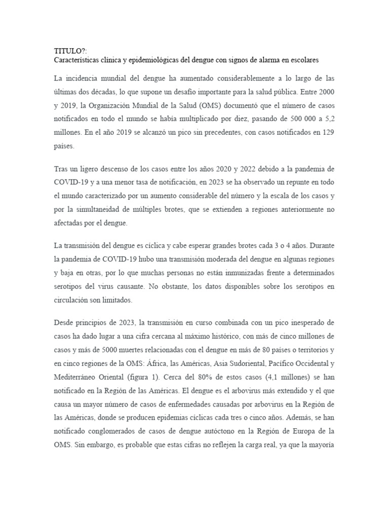 Frecuencia: El DCSA se presenta en aproximadamente el 5-10% de los casos de dengue.