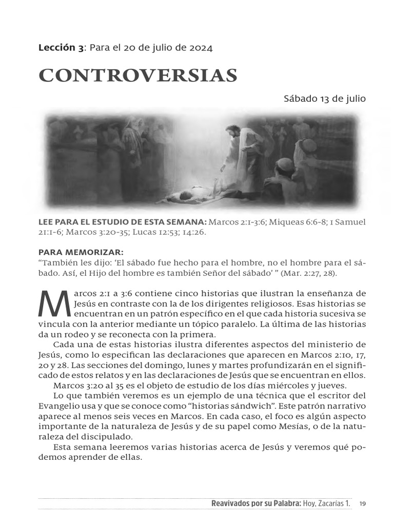 LEE PARA EL ESTUDIO DE ESTA SEMANA: Marcos 2:1-3:6; Miqueas 6:6-8; 1 Samuel