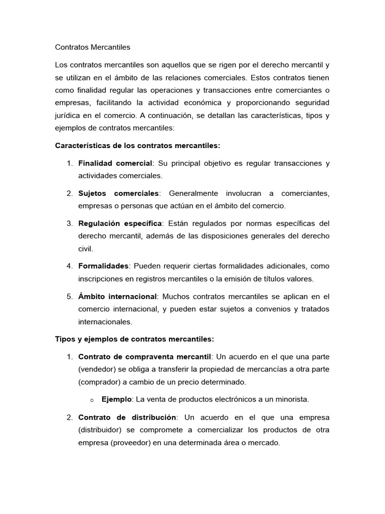 ejemplos de contratos mercantiles: