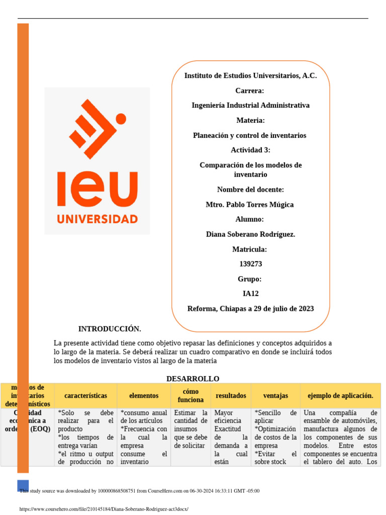 PDF universidad IEU, (29 de junio de 2023) semana 3 planeación y control de inventarios.
