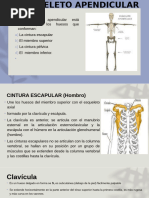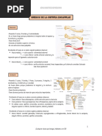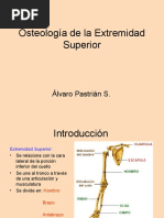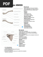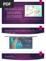 Clavcula: Es un hueso largo, par, no simtrico. 2 caras (superior e inferior), 2 bordes (anterior y posterior), 2 extremidades (acromial y esternal). Se articula con el esternn y el acromion de la escpula.