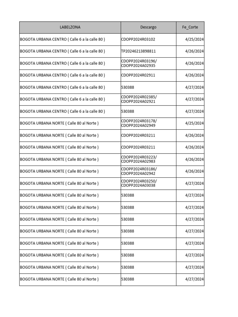 BOGOTA URBANA NORTE ( Calle 80 al Norte ) 4/25/2024