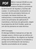 clara y precisa sobre el drenaje linfático manual (DLM). Es