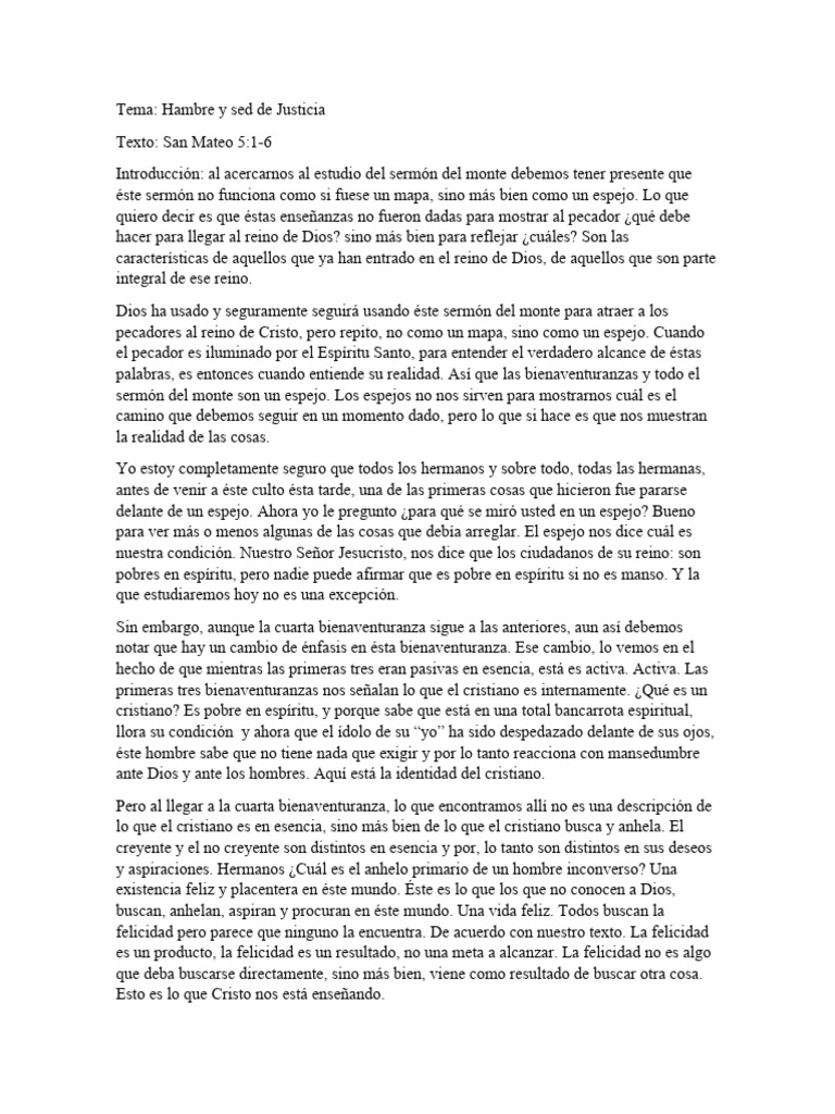 Tema: Hambre y sed de Justicia