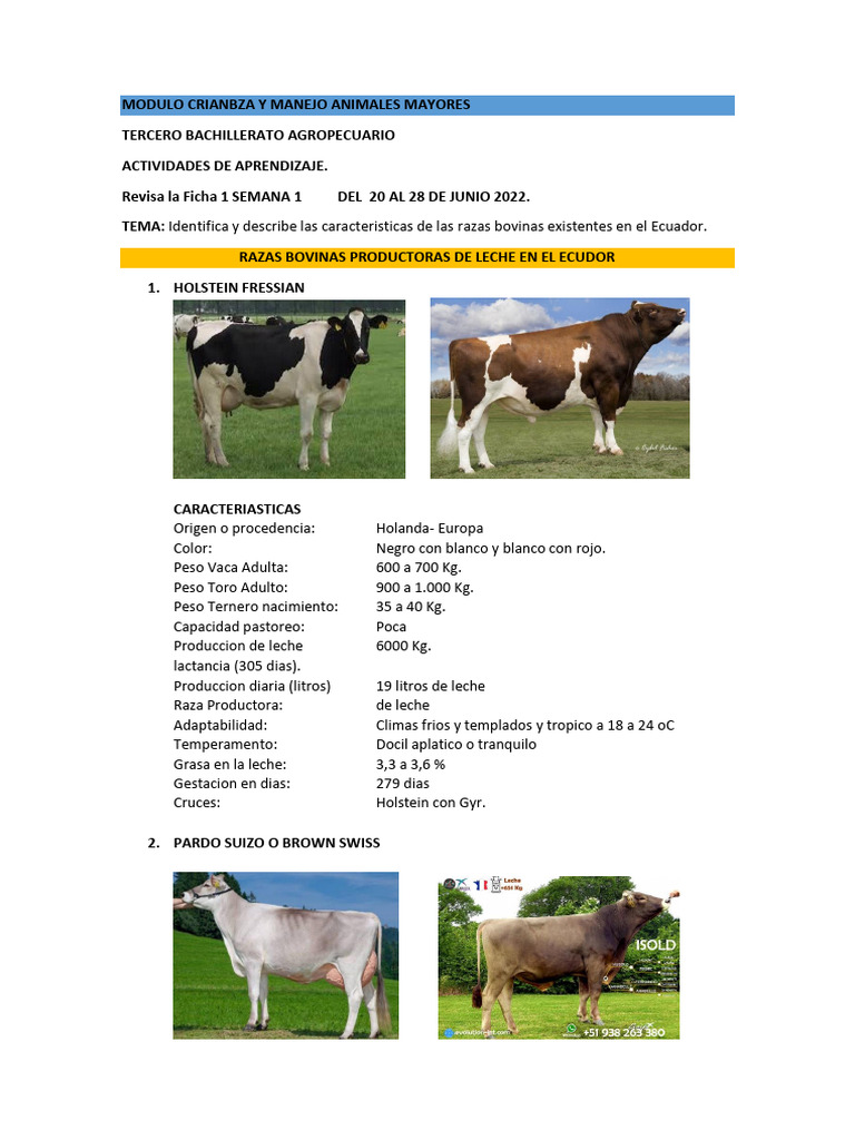 TEMA: Identifica y describe las caracteristicas de las razas bovinas existentes en el Ecuador.