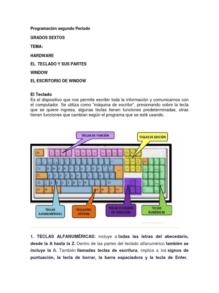 1. TECLAS ALFANUMÉRICAS: incluye a todas las letras del abecedario,