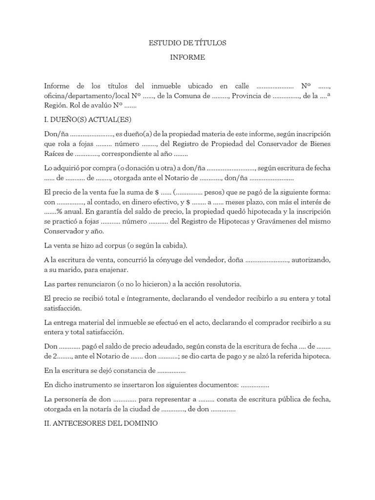 Don/ña ........................, es dueño(a) de la propiedad materia de este informe, según inscripción