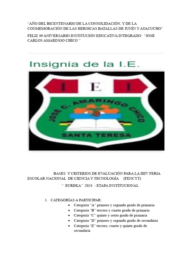 nacional de ciencia y tecnología “EUREKA “ 2024 etapa institucional.