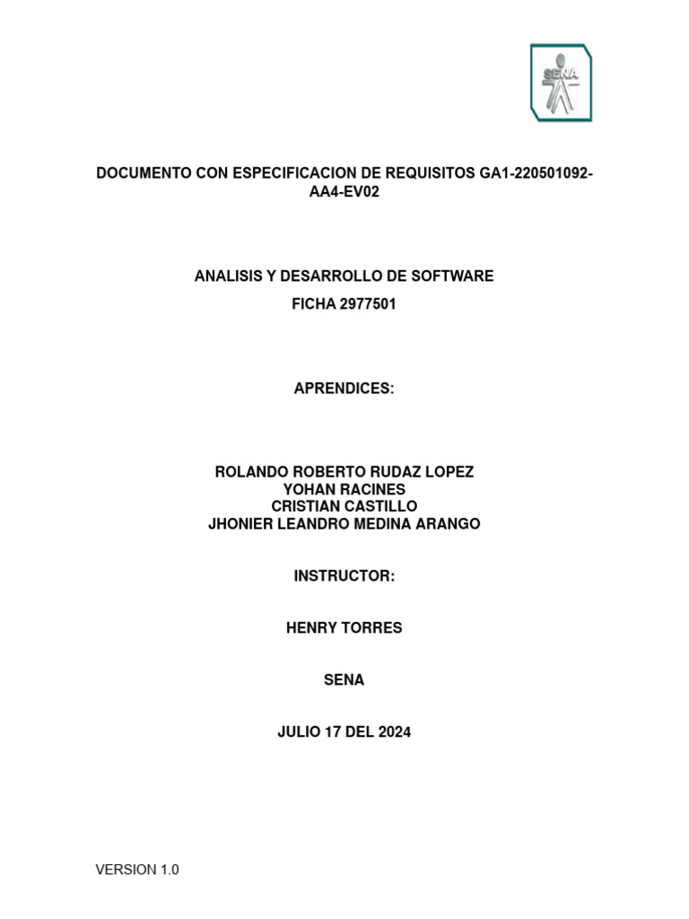 DOCUMENTO CON ESPECIFICACION DE REQUISITOS GA1-220501092-