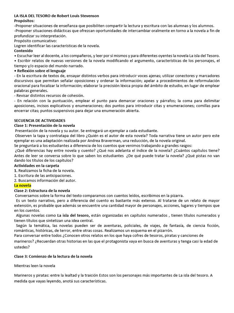 • Escuchar leer al docente, a los compañeros, y leer por sí mismos y para diferentes oyentes la novela La isla del Tesoro.