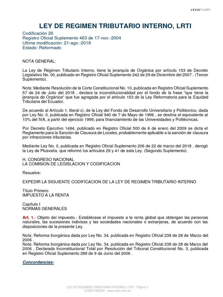 LEY DE REGIMEN TRIBUTARIO INTERNO, LRTI, Arts. 50