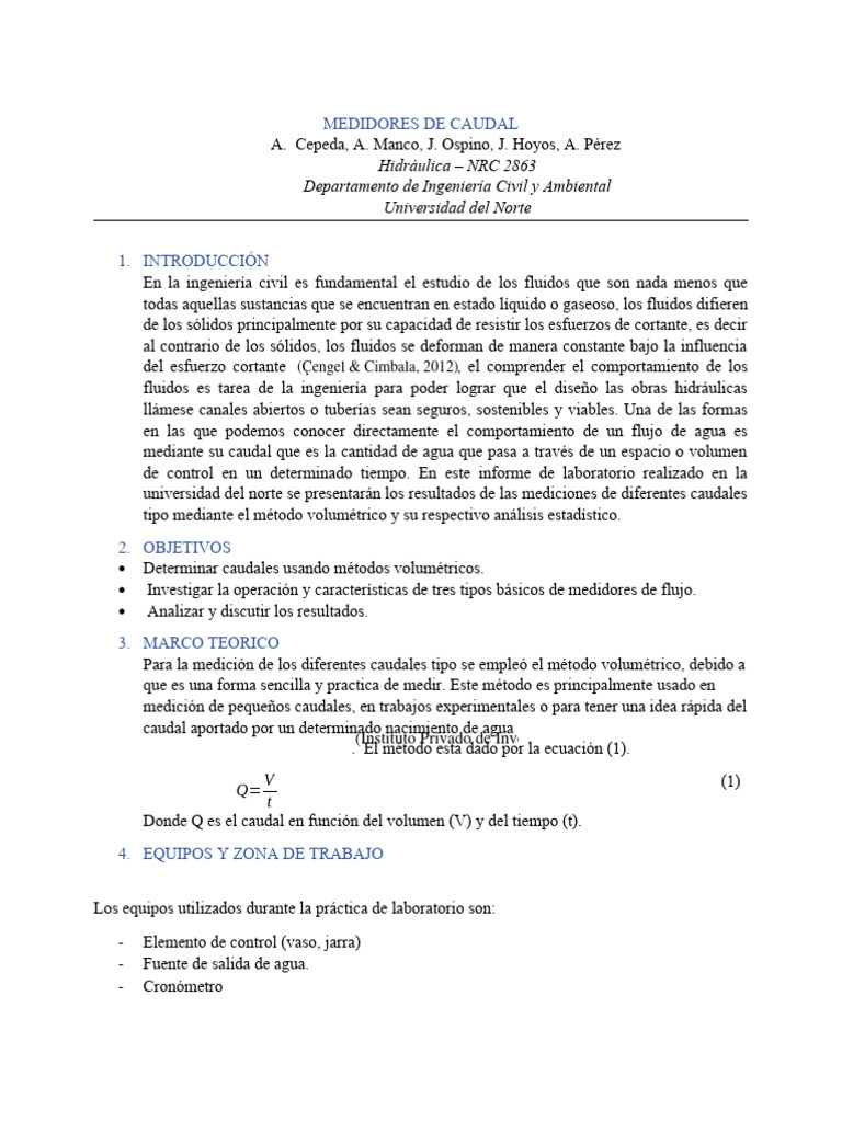 universidad del norte se presentarán los resultados de las mediciones de diferentes caudales