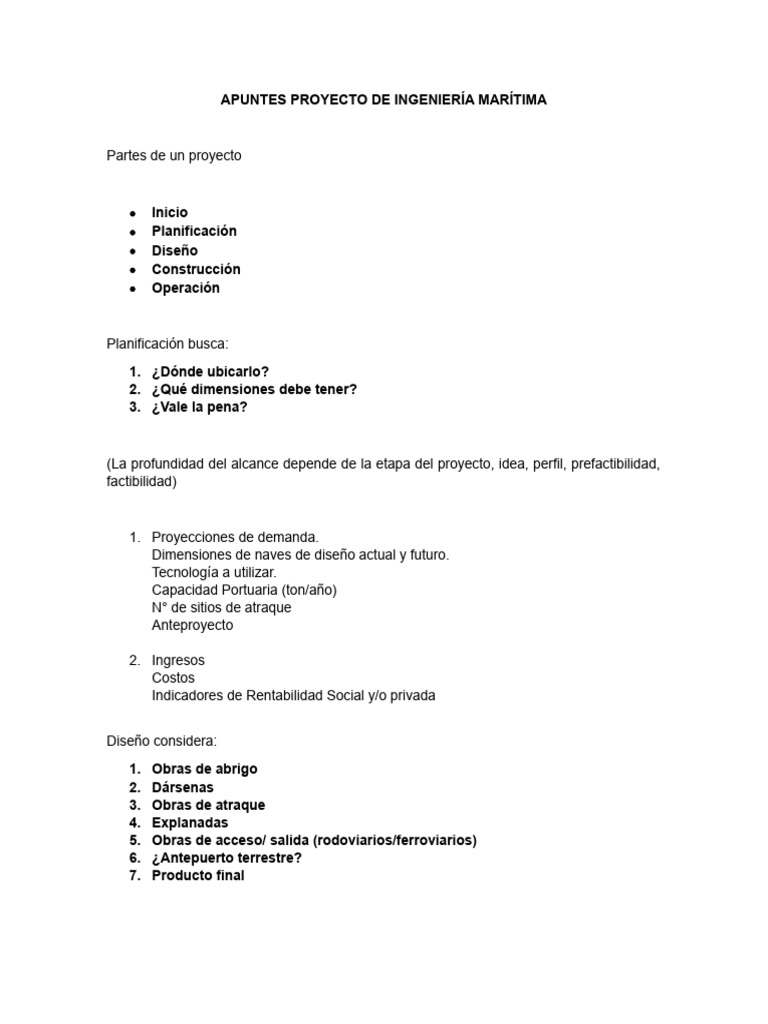 APUNTES PROYECTO DE INGENIERÍA MARÍTIMA