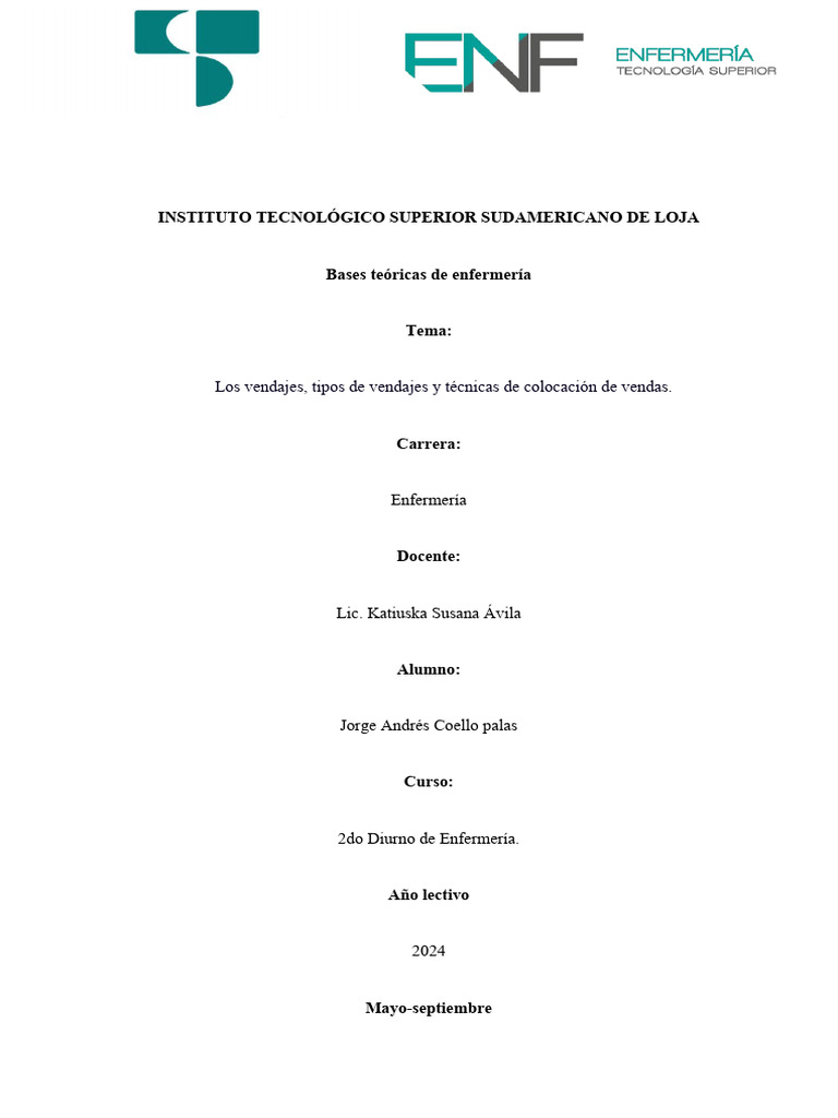 Los vendajes, tipos de vendajes y técnicas de colocación de vendas.