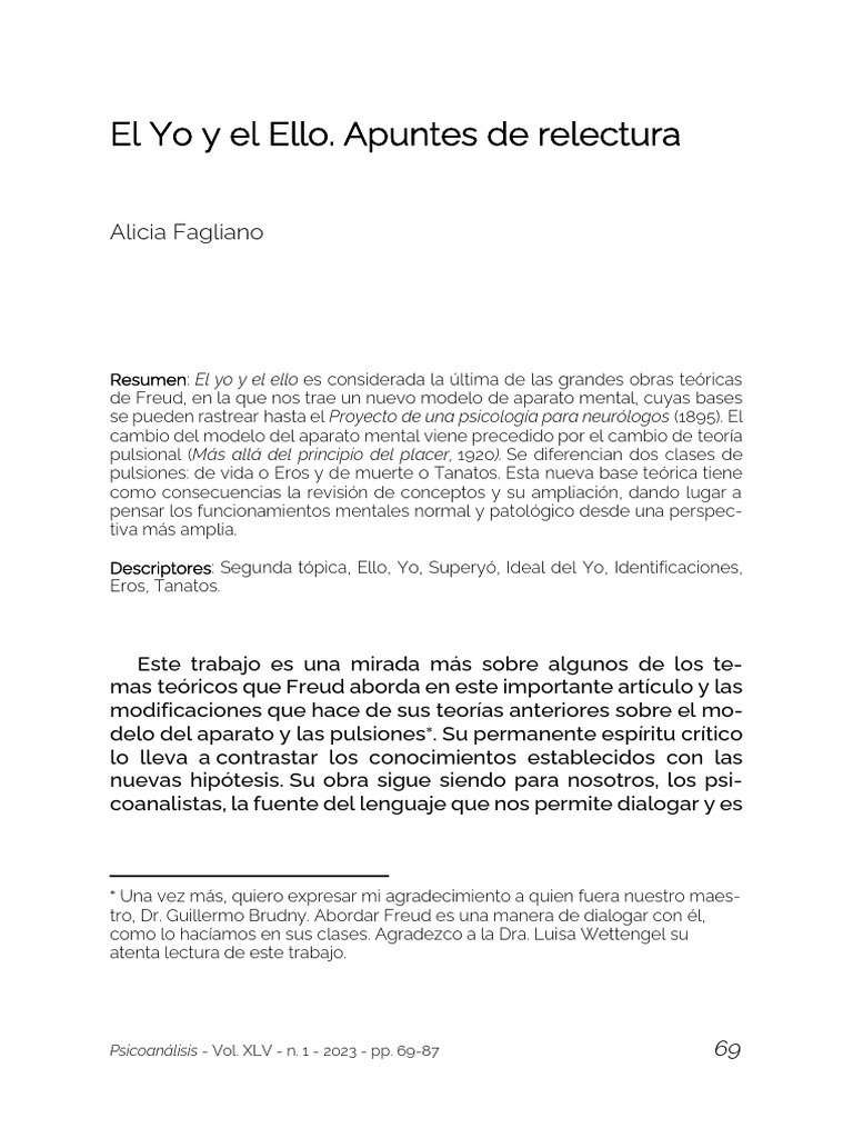 Psicoanálisis - Vol. XLV - n. 1 - 2023 - pp. 69-87 69