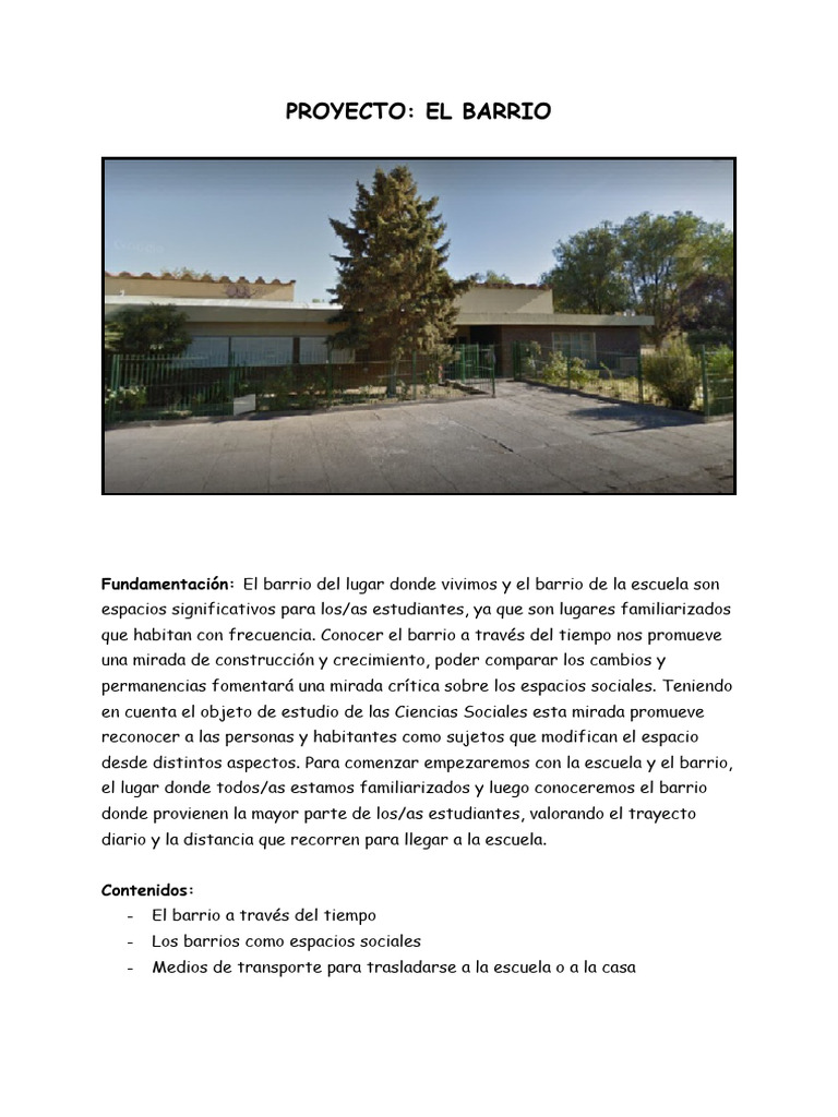 Fundamentación: El barrio del lugar donde vivimos y el barrio de la escuela son