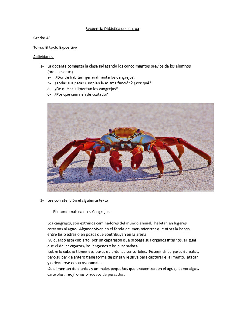 8- ¿En qué lugar del texto” el mundo natural: los cangrejos” agregarías el fragmento