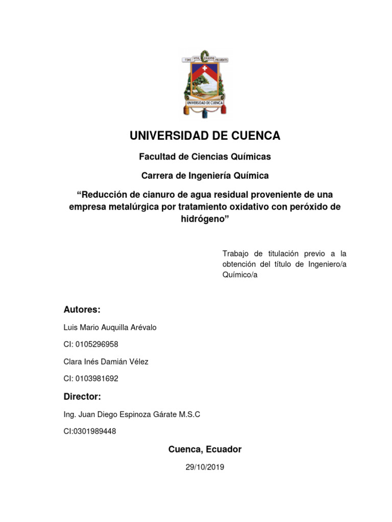 cyanide Total according to Ecuadorian environmental regulations. Finally, a technical
