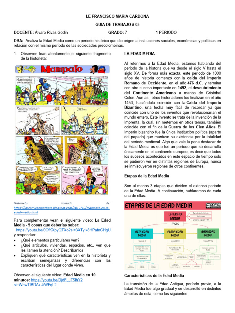 1. Observen lean atentamente el siguiente fragmento LA EDAD MEDIA