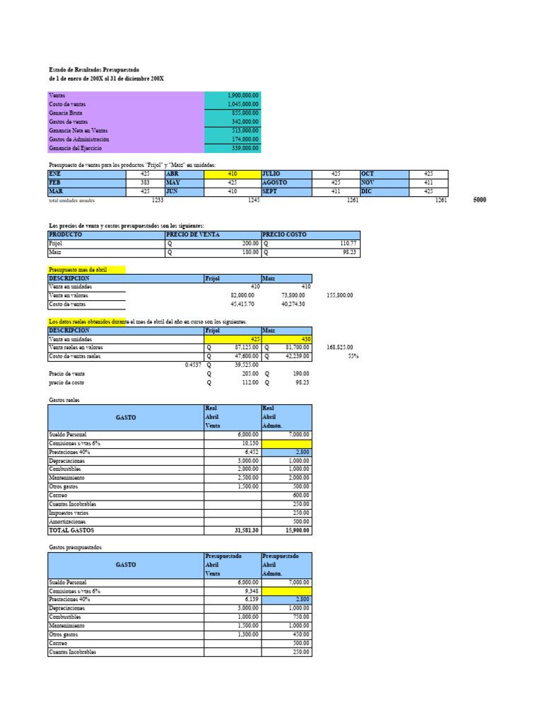 Estado de Resultados y Presupuesto 200X