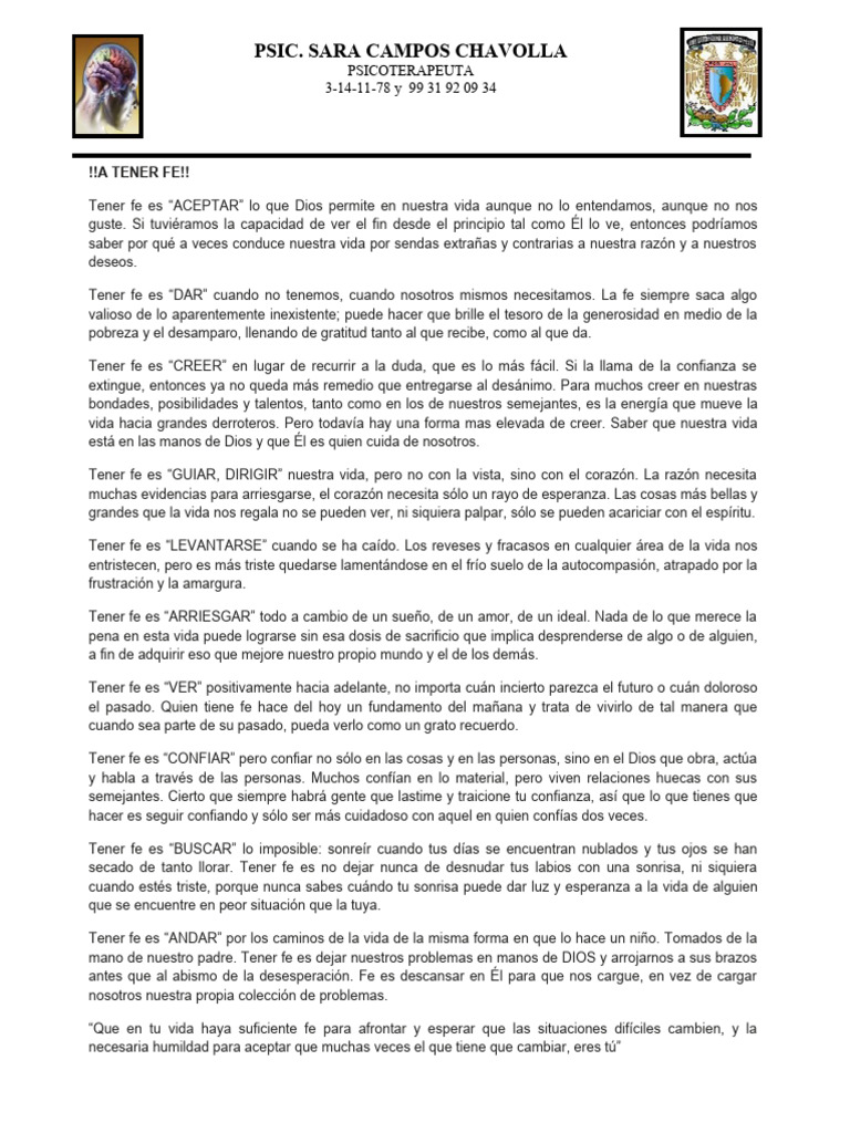 mano de nuestro padre. Tener fe es dejar nuestros problemas en manos de DIOS y arrojarnos a sus brazos