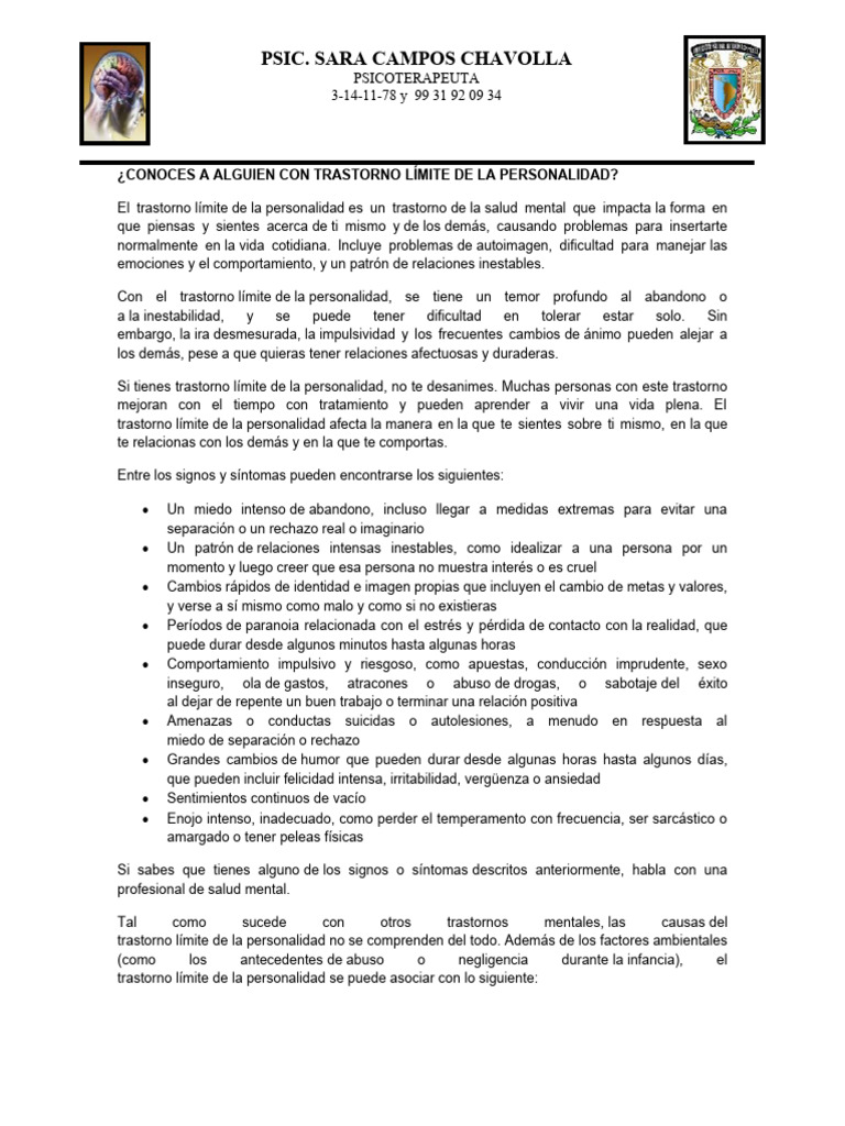 riesgo de sufrir trastorno límite de la personalidad. Algunos de ellos son los siguientes: