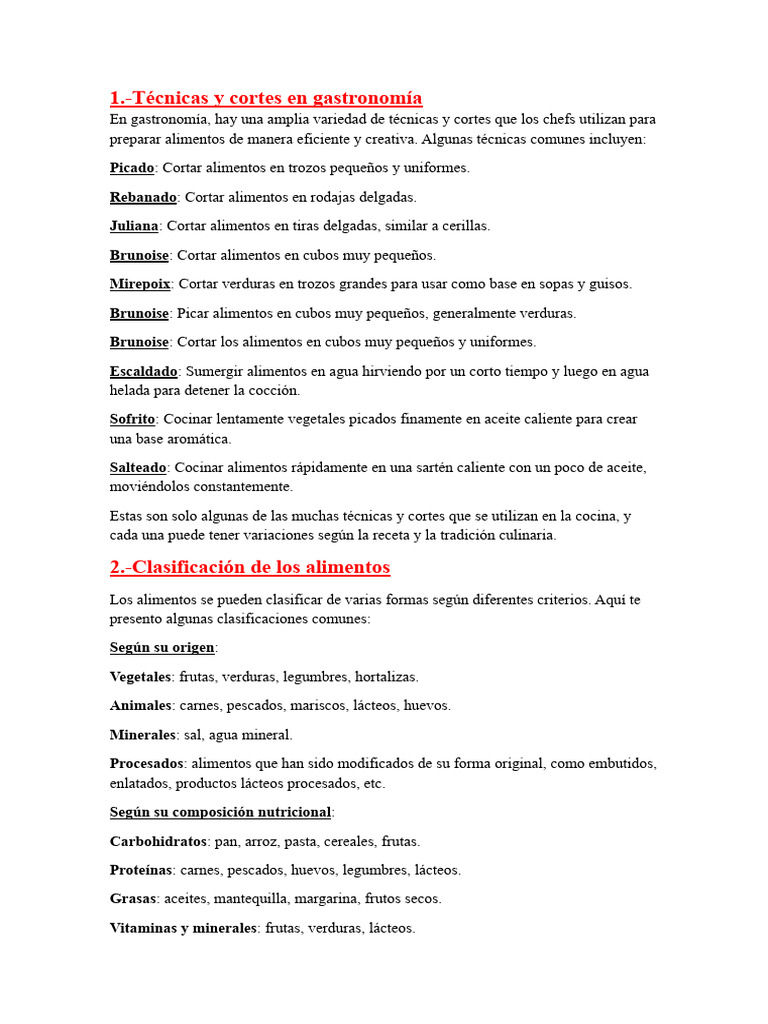 -Técnicas y cortes en gastronomía