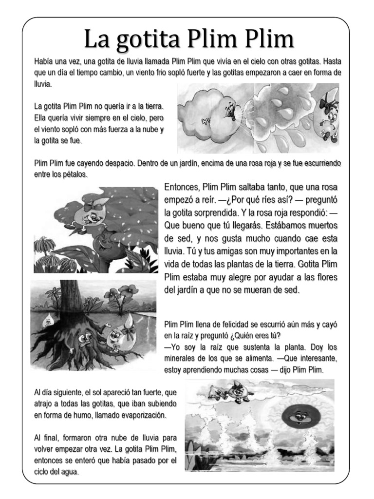Había una vez, una gotita de lluvia llamada Plim Plim que vivía en el cielo con otras gotitas. Hasta