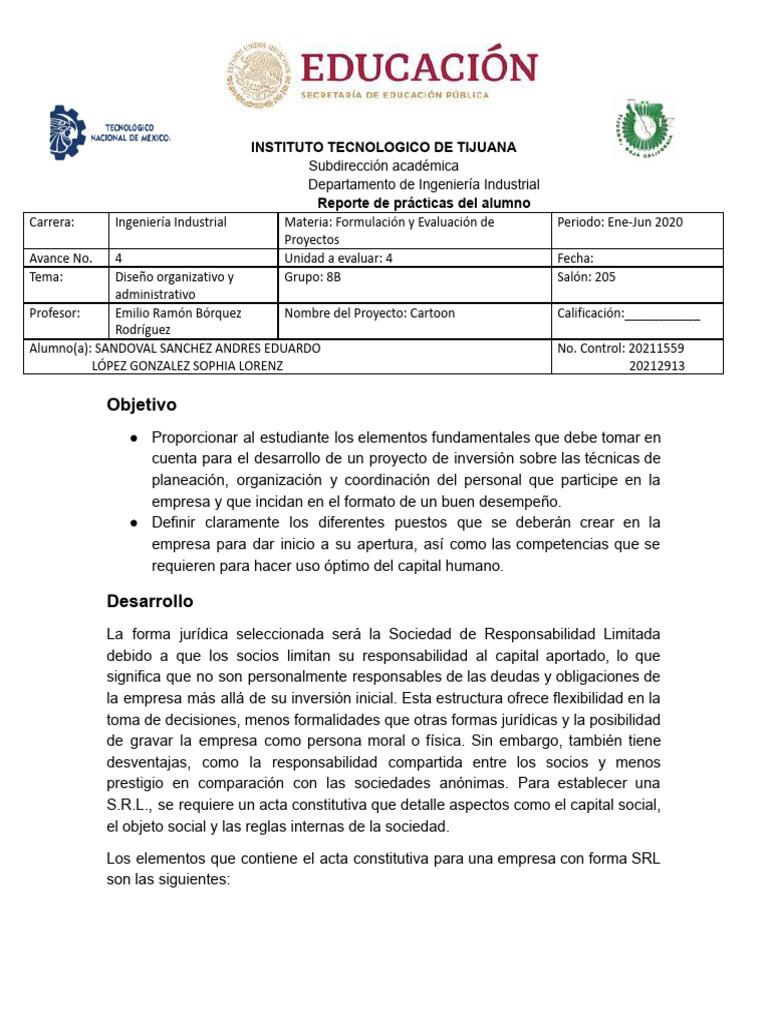 S.R.L., se requiere un acta constitutiva que detalle aspectos como el capital social,