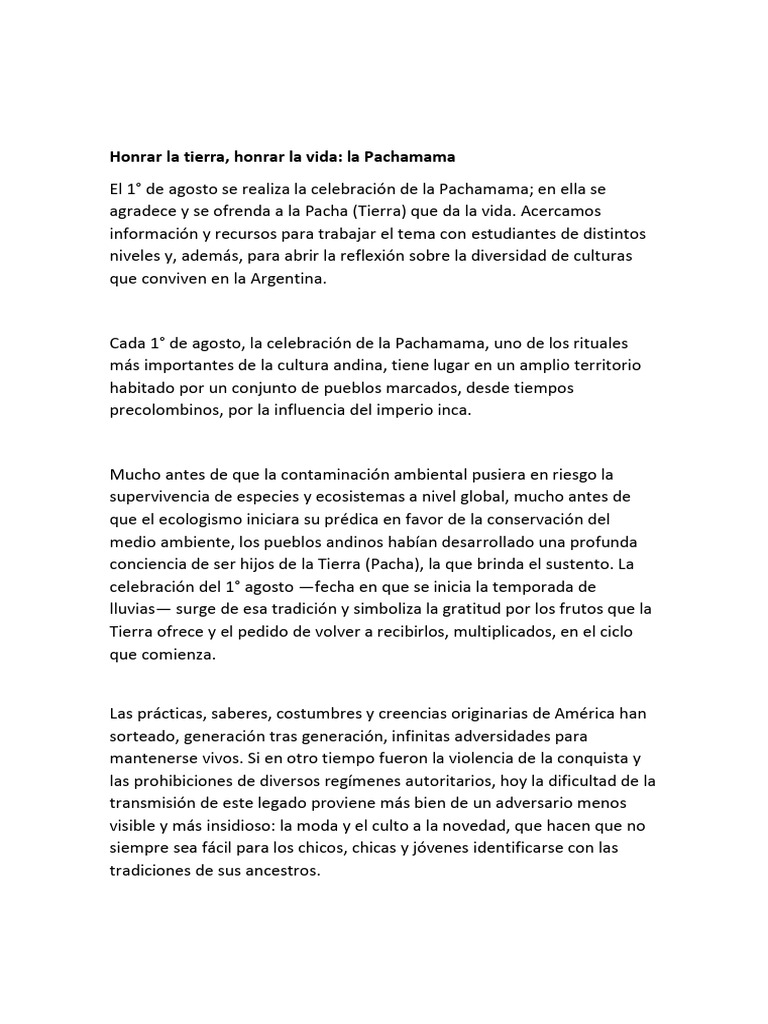 conciencia de ser hijos de la Tierra (Pacha), la que brinda el sustento. La