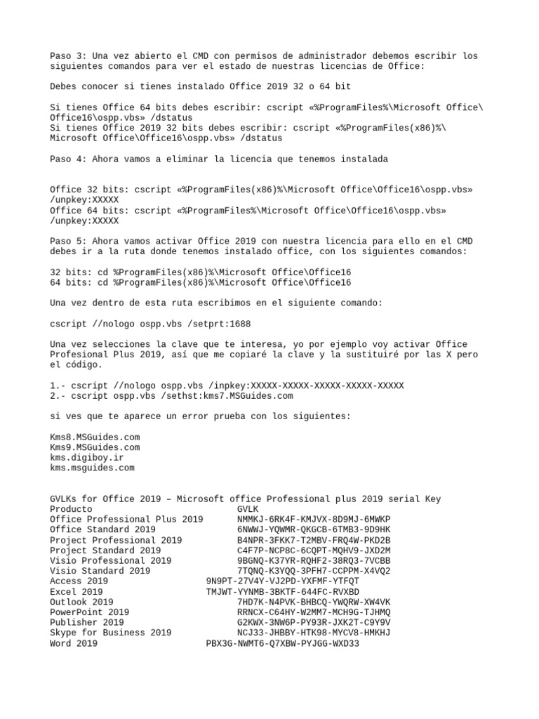 1.- cscript //nologo ospp.vbs /inpkey:XXXXX-XXXXX-XXXXX-XXXXX-XXXXX