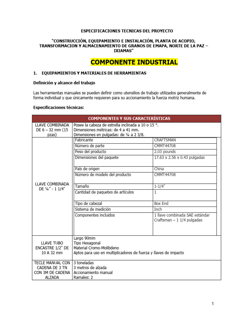 Especificación técnica.