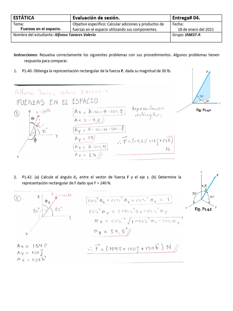 Fuerzas en el espacio. fuerzas en el espacio utilizando sus componentes. 18 de enero del 2021
