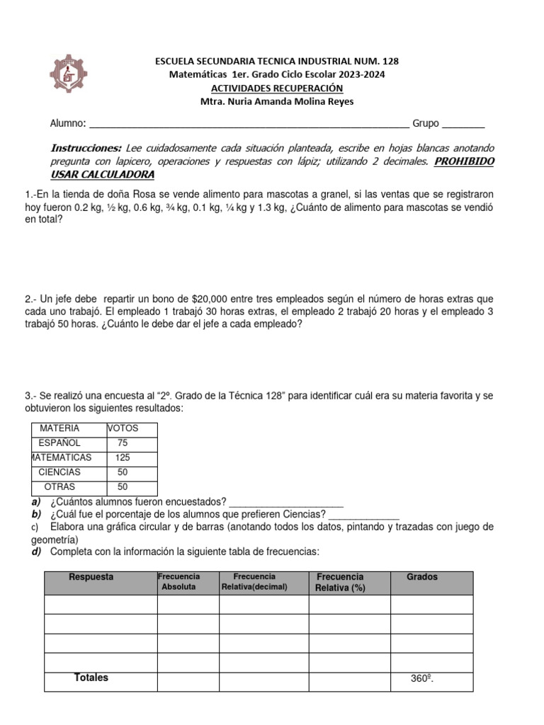 pregunta con lapicero, operaciones y respuestas con lápiz; utilizando 2 decimales. PROHIBIDO