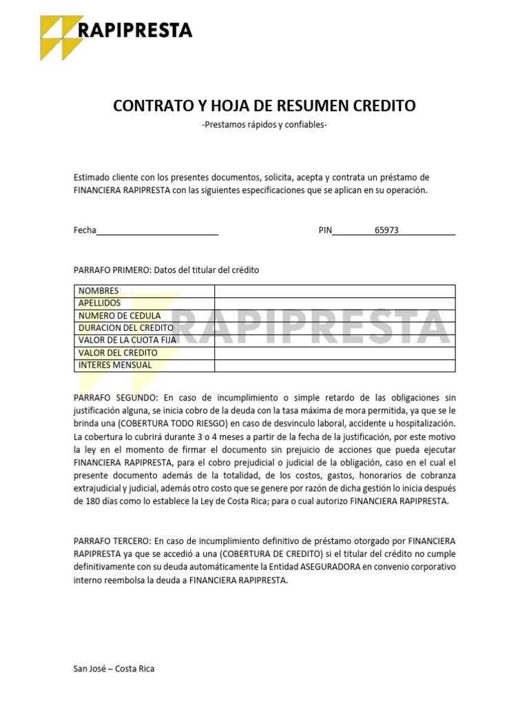 CONTRATO Y HOJA DE RESUMEN CREDITO