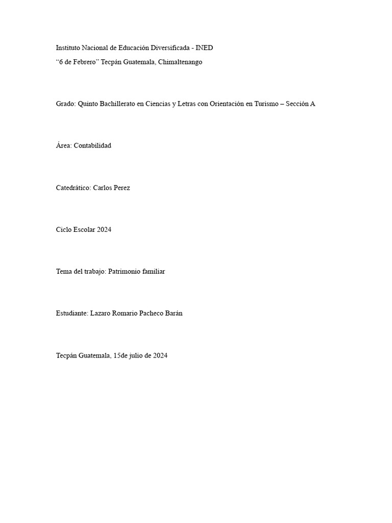 Grado: Quinto Bachillerato en Ciencias y Letras con Orientación en Turismo – Sección A
