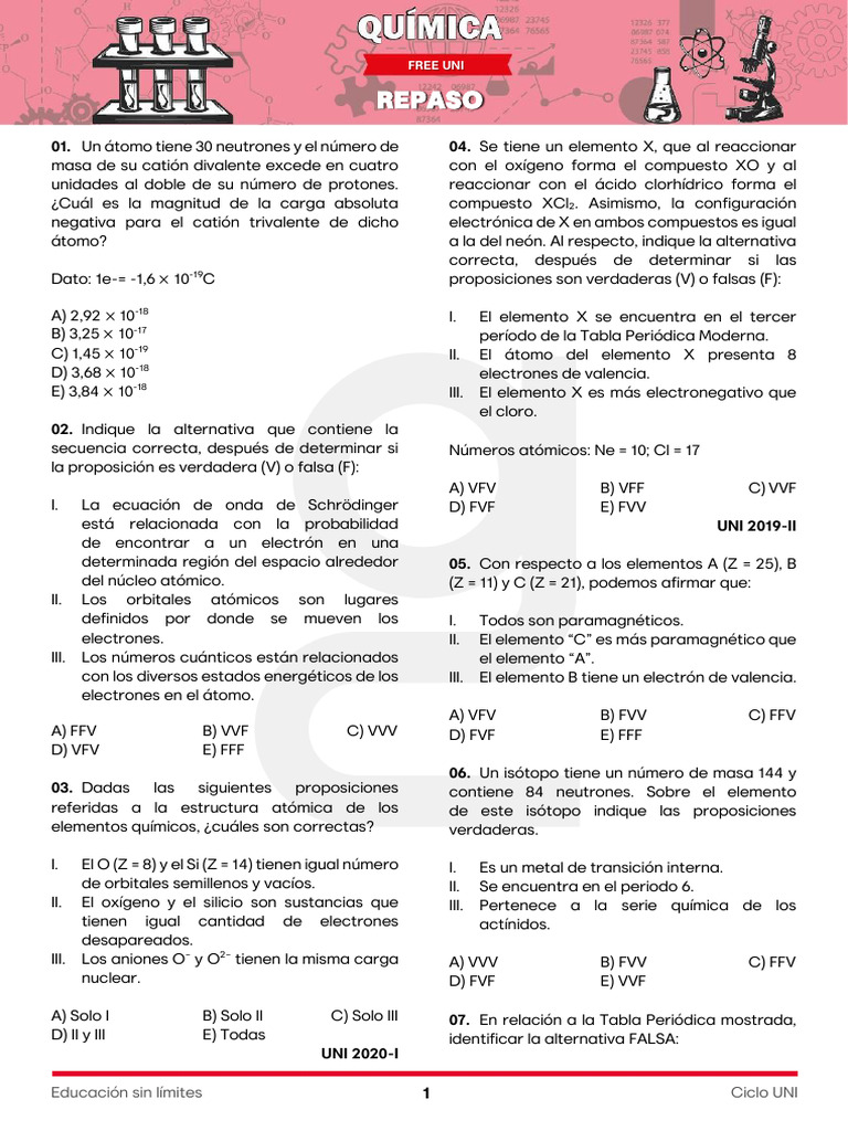 III. Los aniones O− y O2− tienen la misma carga A) VVV B) FVV C) FFV