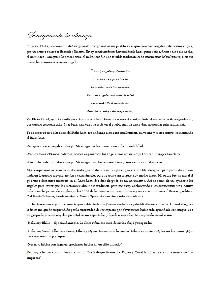 Hola soy Blake, un demonio de Svargnarak. Svargnarak es un pueblo en el que conviven ángeles y demonios en paz,
