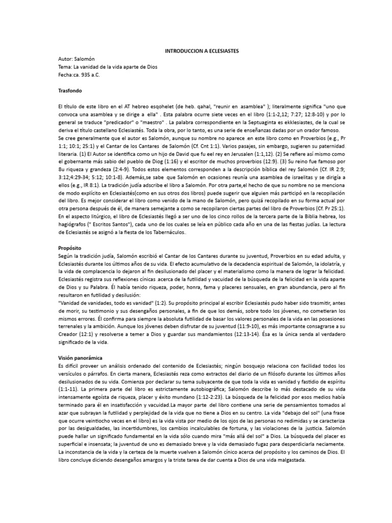 INTRODUCCION A ECLESIASTES
