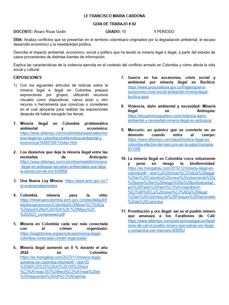 recurso o herramienta que conozcas o consideres 8. Violencia, daño ambiental y necesidad: Minería