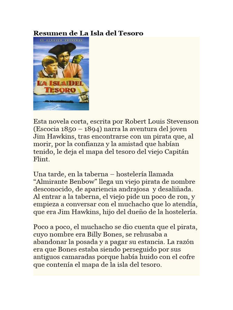 tenido, le deja el mapa del tesoro del viejo Capitán